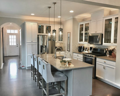To Customize the Aesthetic of This New Construction Townhome, Luxury Upgrades to the Builder-grade Kitchen Design Were Thoughtfully Curated. Standard Cabinetry Doors Were Replaced With Glass Paneled Doors, Shelves, & Recessed Lighting, to Transform the Aesthetic. Hand-Blown Glass Pendants & Knobs Add a Modern Yet Timeless Appeal. The Rest of the Lighting Was Replaced With Dazzling Luxury Chandeliers to Cast a Warm, Inviting Glow, Enhancing the Ambiance & Serving as Captivating Focal Points. Upstairs, a Steel Cable Railing Replaces a Standard Half Wall in the Loft Area, Introducing a Sleek, Industrial Edge While Maintaining an Open, Airy Feel. The Result is a Sophisticated Sanctuary, Where Every Detail Reflects Thoughtful Craftsmanship & Style.